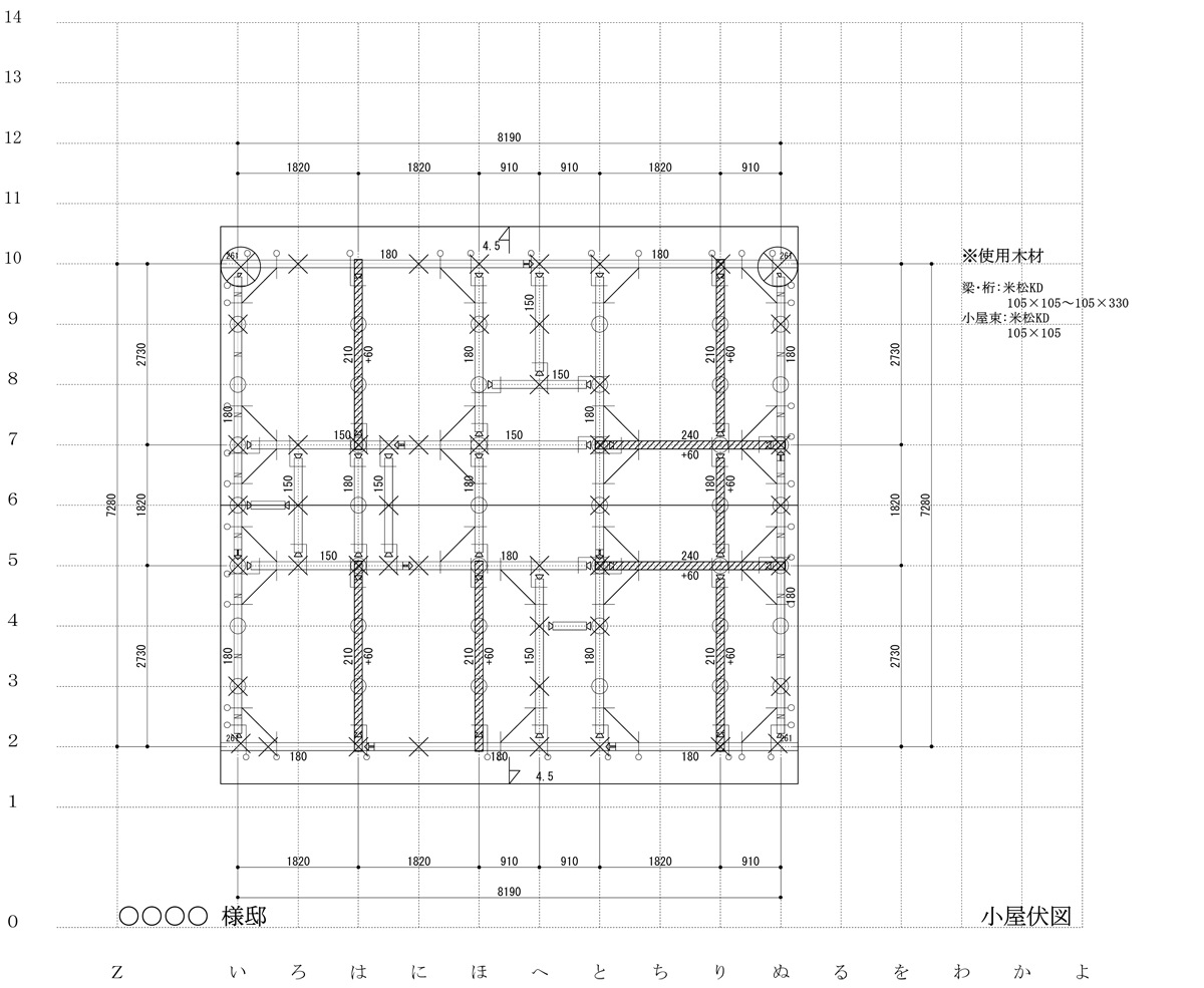 バランスのとれた軸組、材料長さを考慮した図面作成をいたします。